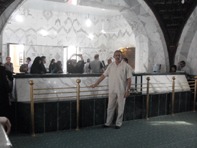 The actual site on a hill over-looking Damascus is reached with some effort and frankly at the end turns out to be rather disappointing. For over the Cave and all around it, there is crowded construction, housing low income families. To see the actual Cave you enter a building, climb some steps, go into a flat and through a couple of rooms, and then enter a small room the sides of which are rock faces, indicating that the room and the building has been constructed on what was once a rocky hill with a cave in it. The veracity of this being the ‘real thing’ is also disputed as there are also claims that the ‘real’ Ashab-e-Kahf is in Turkey or in Jordan. Nevertheless this claimed site in Damascus is regularly visited by religious tourists, who are hassled for alms by a local woman, presumably a resident of the flat which has become the thoroughfare to reach the Cave.